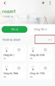 - Để đổi tên thiết bị chọn công tắc rèm cửa muốn đổi tên, nhấn vào biểu tượng dấu 3 chấm trên góc phải màn hình.