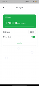 Ở thẻ “Trạng thái” gạt công tắc sang trái để hẹn giờ tắt, gạt sang phải để hẹn giờ bật. Chọn bắt đầu để hoàn tất thiết lập hẹn giờ.