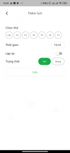 Để cài đặt giờ thực hiện, trong mục thời gian. Nếu muốn lặp lại hàng tuần hãy gạt phải công tắc . Sau khi cài đặt xong chọn “Lưu” để cập nhật cài đặt.